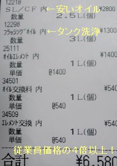 で主目的。オイル交換を依頼。前回交換時に貼られたラベルの“次回交換”の推奨年月から丸1年経ってたし、推奨距離も当然オーバーしてたから、オイルタンクをフラッシングで綺麗にもしてもらおうと。エレメントの交換も強く勧められた。