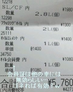 オイル会員になりました。入会費だけで、工賃が無料になってペイ出来る上にオイル類が1割引と勧められてね。4ヶ月前のアトレー7の時もそうすれば良かったのかなーと損した気分w
